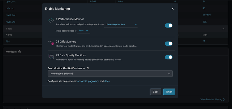 Once your model data is in the Arize platform, enable monitors in Arize to catch drift, data quality, and performance issues. Arize supports three main types of monitors: